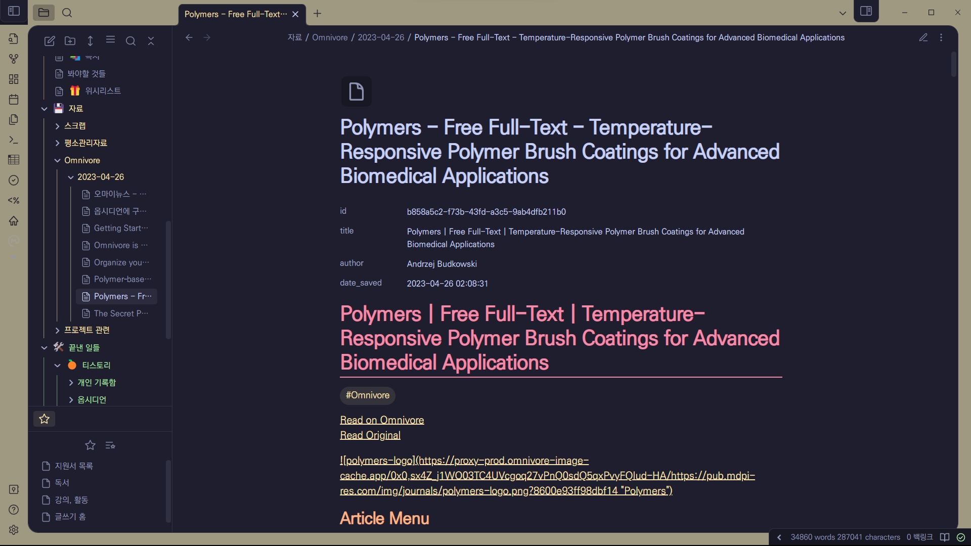 옵시디언 웹 스크랩(scrap), 클립핑(clipping) 모두 씹어먹는 Omnivore 무료 프로그램 서비스.