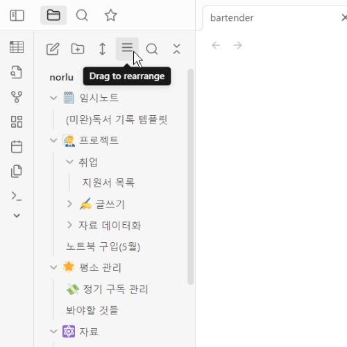 3. 커뮤니티 플러그인목록에서 새로생긴 bartender 활성화 후 옵시디언 재시작